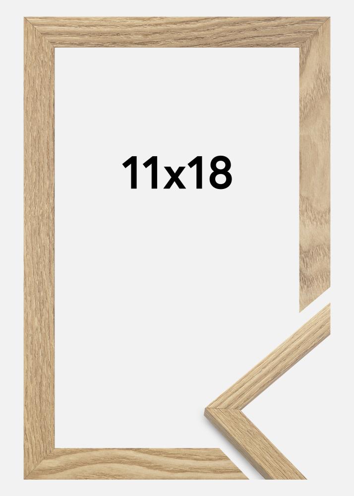 Rama este realizată din MDF cu o suprafață de culoare stejar și are un profil subțire de 14 mm. Există mult spațiu pentru a completa imaginile tale cu un passepartout de lux, datorită adâncimii interioare a ramei (adâncimea fantei) de 12 mm.