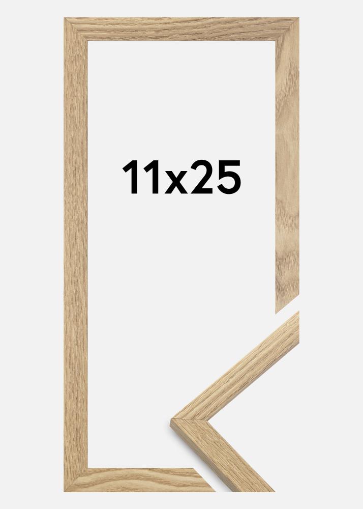 Rama este realizată din MDF cu o suprafață de culoare stejar și are un profil subțire de 14 mm. Există mult spațiu pentru a completa imaginile tale cu un passepartout de lux, datorită adâncimii interioare a ramei (adâncimea fantei) de 12 mm.