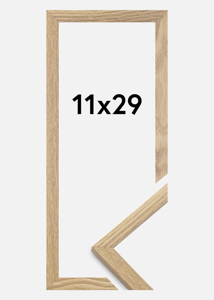 Rama este realizată din MDF cu o suprafață de culoare stejar și are un profil subțire de 14 mm. Există mult spațiu pentru a completa imaginile tale cu un passepartout de lux, datorită adâncimii interioare a ramei (adâncimea fantei) de 12 mm.