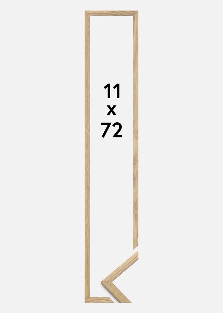 Rama este realizată din MDF cu o suprafață de culoare stejar și are un profil subțire de 14 mm. Există mult spațiu pentru a completa imaginile tale cu un passepartout de lux, datorită adâncimii interioare a ramei (adâncimea fantei) de 12 mm.