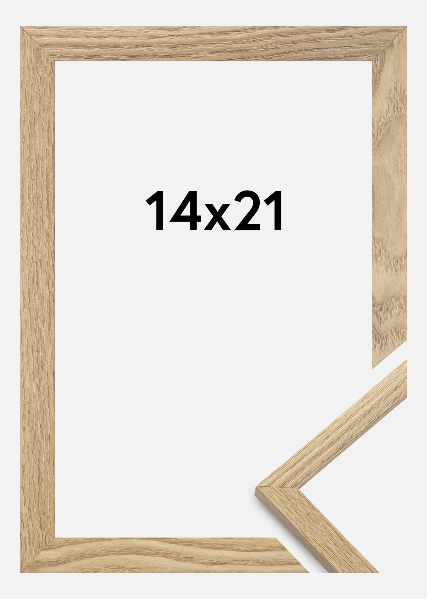 Rama este realizată din MDF cu o suprafață de culoare stejar și are un profil subțire de 14 mm. Există mult spațiu pentru a completa imaginile tale cu un passepartout de lux, datorită adâncimii interioare a ramei (adâncimea fantei) de 12 mm.