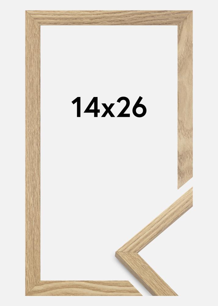 Rama este realizată din MDF cu o suprafață de culoare stejar și are un profil subțire de 14 mm. Există mult spațiu pentru a completa imaginile tale cu un passepartout de lux, datorită adâncimii interioare a ramei (adâncimea fantei) de 12 mm.