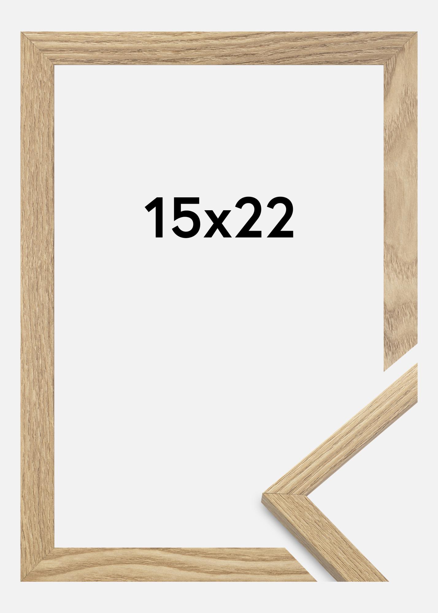 Rama este realizată din MDF cu o suprafață de culoare stejar și are un profil subțire de 14 mm. Există mult spațiu pentru a completa imaginile tale cu un passepartout de lux, datorită adâncimii interioare a ramei (adâncimea fantei) de 12 mm.