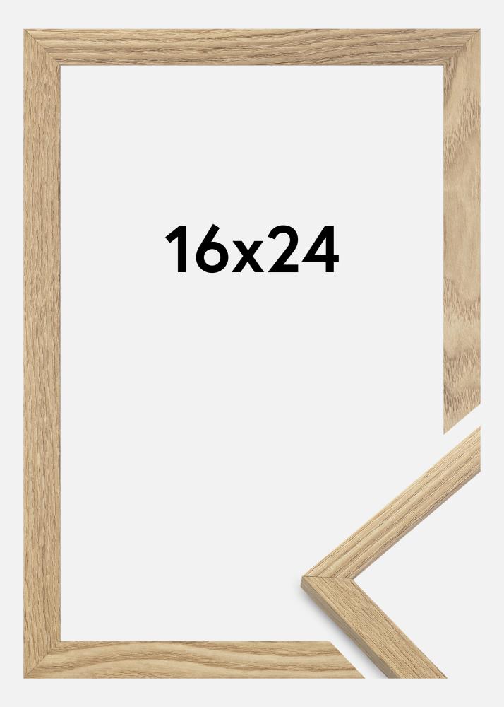 Rama este realizată din MDF cu o suprafață de culoare stejar și are un profil subțire de 14 mm. Există mult spațiu pentru a completa imaginile tale cu un passepartout de lux, datorită adâncimii interioare a ramei (adâncimea fantei) de 12 mm.