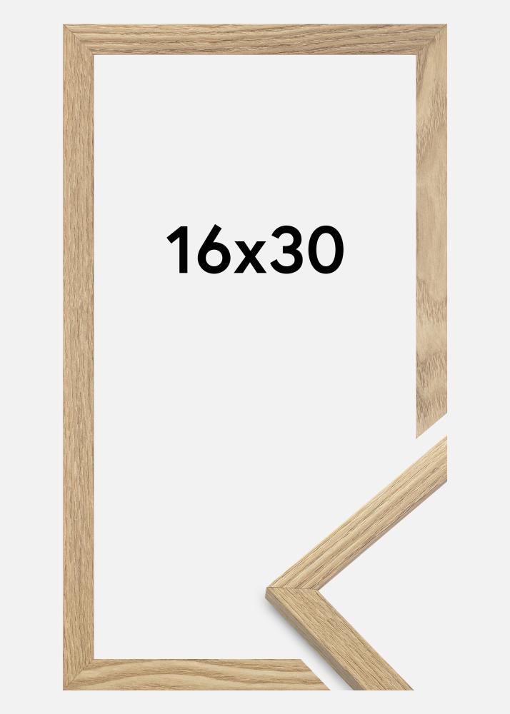 Rama este realizată din MDF cu o suprafață de culoare stejar și are un profil subțire de 14 mm. Există mult spațiu pentru a completa imaginile tale cu un passepartout de lux, datorită adâncimii interioare a ramei (adâncimea fantei) de 12 mm.