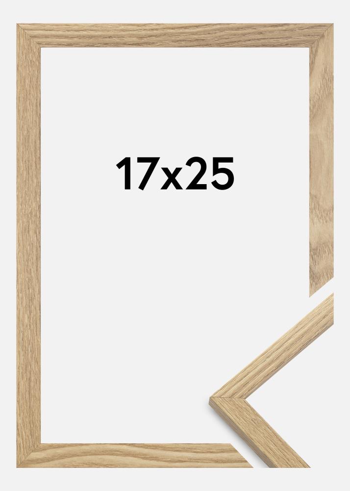 Rama este realizată din MDF cu o suprafață de culoare stejar și are un profil subțire de 14 mm. Există mult spațiu pentru a completa imaginile tale cu un passepartout de lux, datorită adâncimii interioare a ramei (adâncimea fantei) de 12 mm.