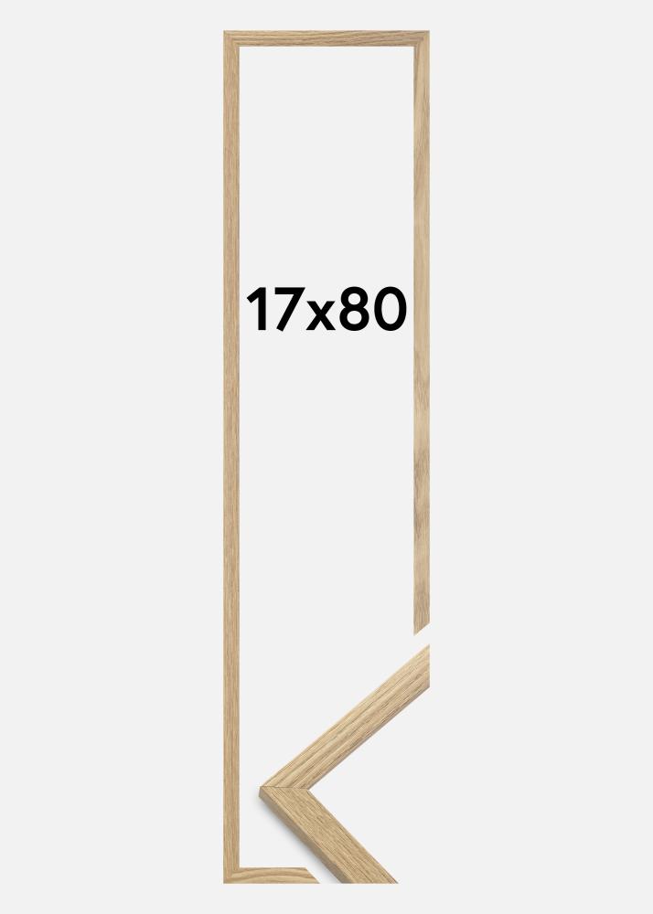 Rama este realizată din MDF cu o suprafață de culoare stejar și are un profil subțire de 14 mm. Există mult spațiu pentru a completa imaginile tale cu un passepartout de lux, datorită adâncimii interioare a ramei (adâncimea fantei) de 12 mm.