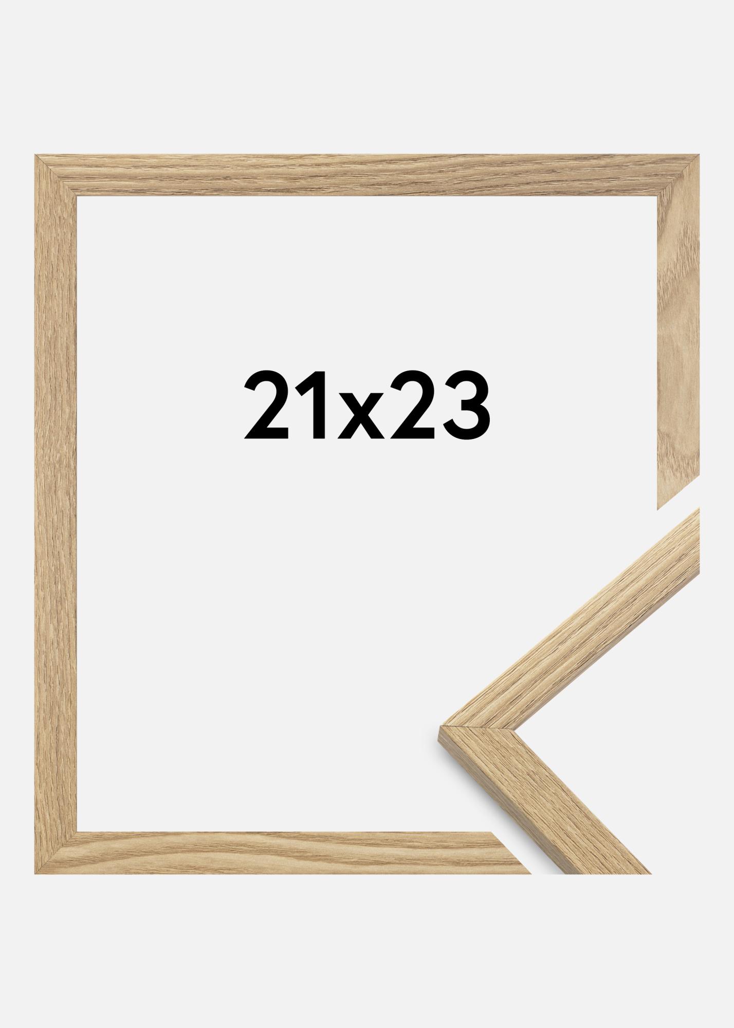 Rama este realizată din MDF cu o suprafață de culoare stejar și are un profil subțire de 14 mm. Există mult spațiu pentru a completa imaginile tale cu un passepartout de lux, datorită adâncimii interioare a ramei (adâncimea fantei) de 12 mm.