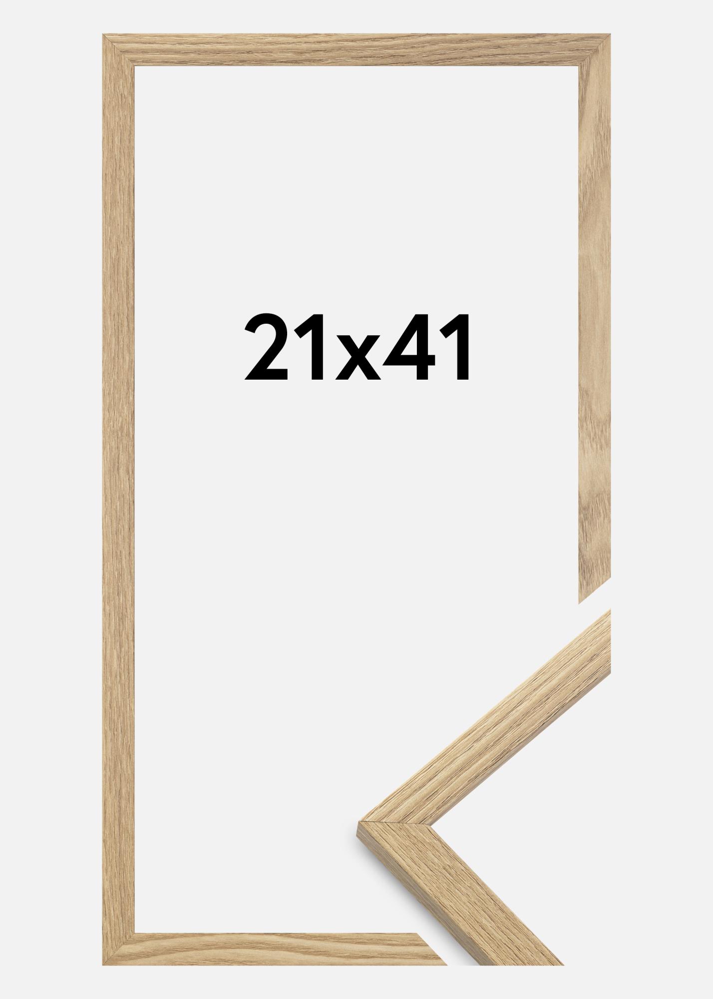 Rama este realizată din MDF cu o suprafață de culoare stejar și are un profil subțire de 14 mm. Există mult spațiu pentru a completa imaginile tale cu un passepartout de lux, datorită adâncimii interioare a ramei (adâncimea fantei) de 12 mm.