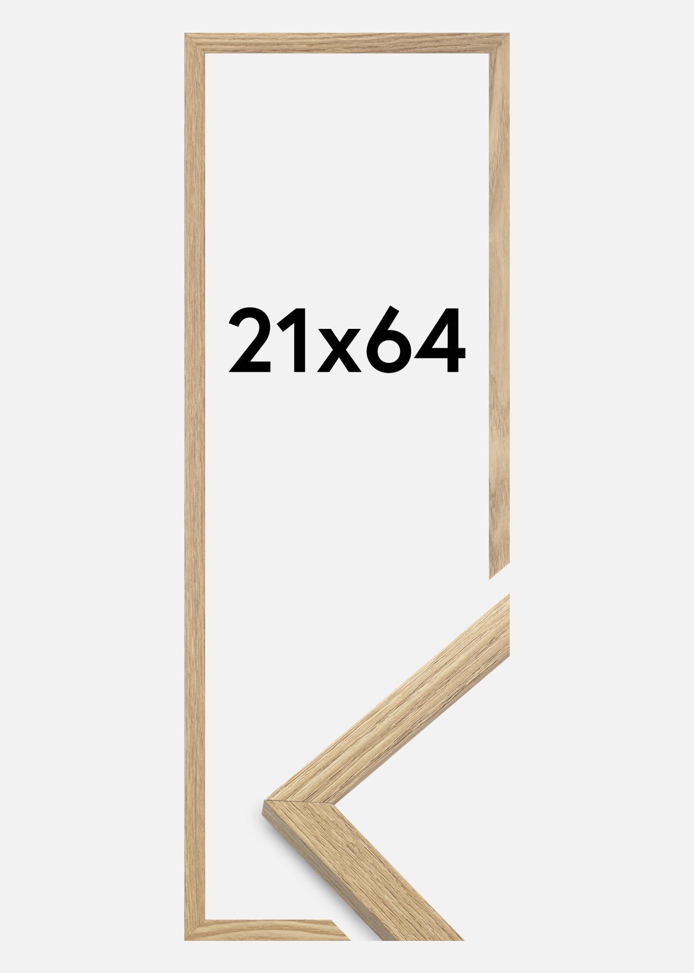 Rama este realizată din MDF cu o suprafață de culoare stejar și are un profil subțire de 14 mm. Există mult spațiu pentru a completa imaginile tale cu un passepartout de lux, datorită adâncimii interioare a ramei (adâncimea fantei) de 12 mm.