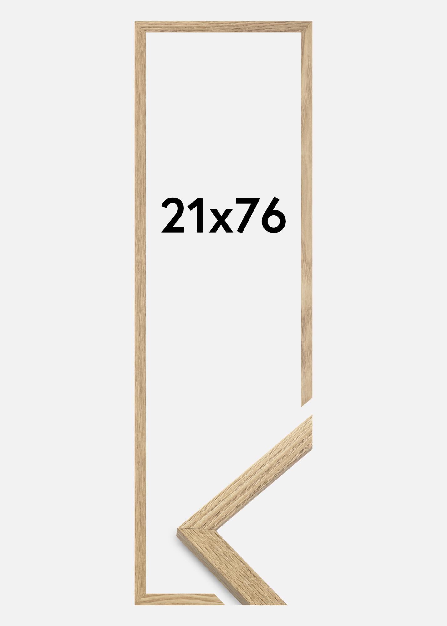 Rama este realizată din MDF cu o suprafață de culoare stejar și are un profil subțire de 14 mm. Există mult spațiu pentru a completa imaginile tale cu un passepartout de lux, datorită adâncimii interioare a ramei (adâncimea fantei) de 12 mm.