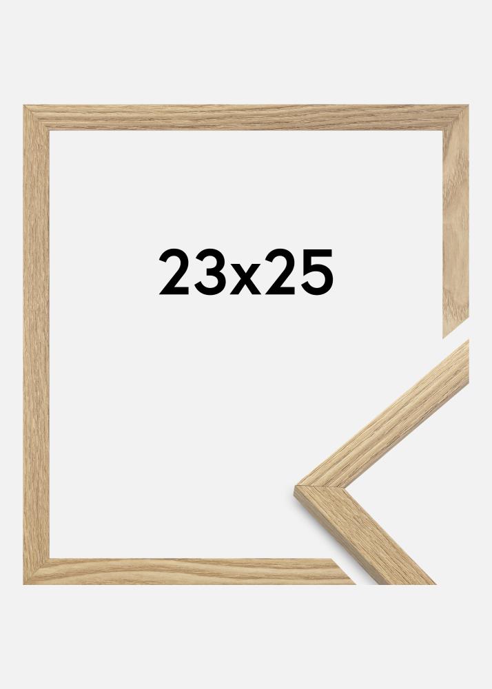 Rama este realizată din MDF cu o suprafață de culoare stejar și are un profil subțire de 14 mm. Există mult spațiu pentru a completa imaginile tale cu un passepartout de lux, datorită adâncimii interioare a ramei (adâncimea fantei) de 12 mm.