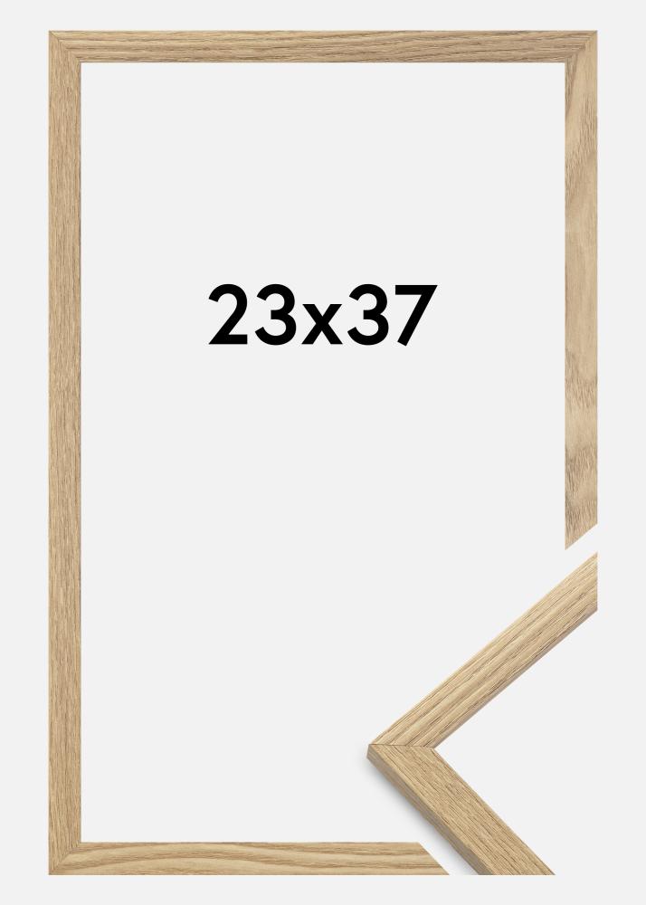 Rama este realizată din MDF cu o suprafață de culoare stejar și are un profil subțire de 14 mm. Există mult spațiu pentru a completa imaginile tale cu un passepartout de lux, datorită adâncimii interioare a ramei (adâncimea fantei) de 12 mm.