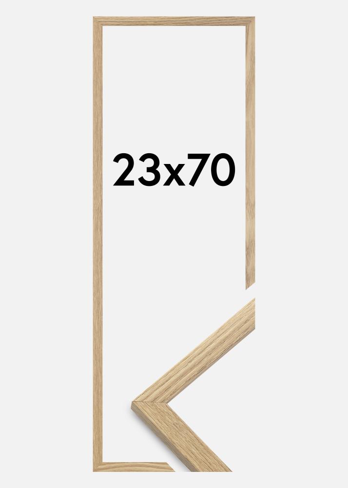Rama este realizată din MDF cu o suprafață de culoare stejar și are un profil subțire de 14 mm. Există mult spațiu pentru a completa imaginile tale cu un passepartout de lux, datorită adâncimii interioare a ramei (adâncimea fantei) de 12 mm.