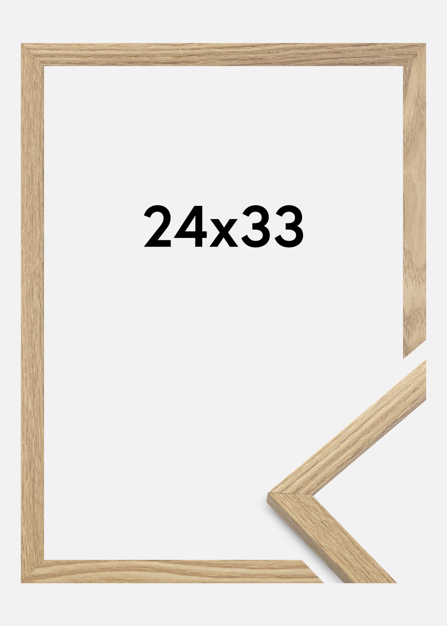 Rama este realizată din MDF cu o suprafață de culoare stejar și are un profil subțire de 14 mm. Există mult spațiu pentru a completa imaginile tale cu un passepartout de lux, datorită adâncimii interioare a ramei (adâncimea fantei) de 12 mm.