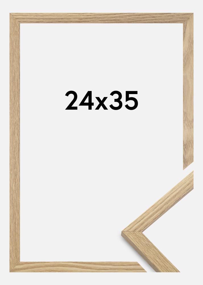 Rama este realizată din MDF cu o suprafață de culoare stejar și are un profil subțire de 14 mm. Există mult spațiu pentru a completa imaginile tale cu un passepartout de lux, datorită adâncimii interioare a ramei (adâncimea fantei) de 12 mm.