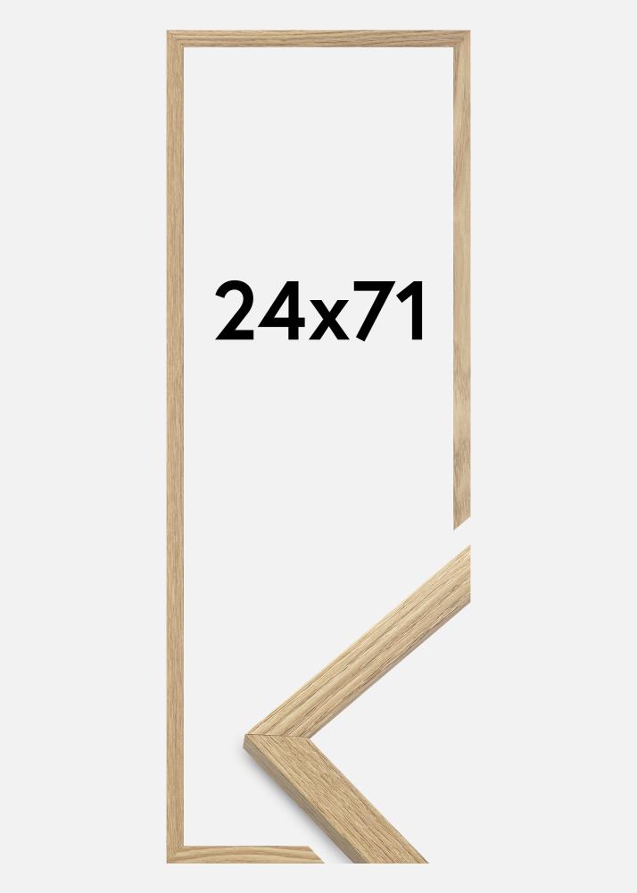 Rama este realizată din MDF cu o suprafață de culoare stejar și are un profil subțire de 14 mm. Există mult spațiu pentru a completa imaginile tale cu un passepartout de lux, datorită adâncimii interioare a ramei (adâncimea fantei) de 12 mm.