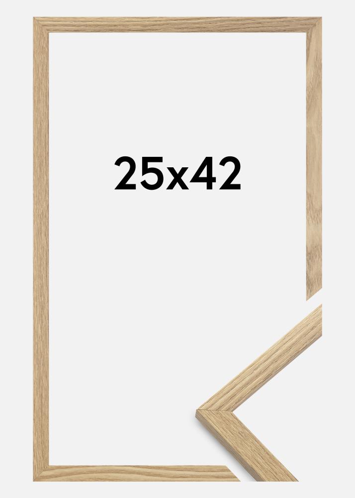 Rama este realizată din MDF cu o suprafață de culoare stejar și are un profil subțire de 14 mm. Există mult spațiu pentru a completa imaginile tale cu un passepartout de lux, datorită adâncimii interioare a ramei (adâncimea fantei) de 12 mm.