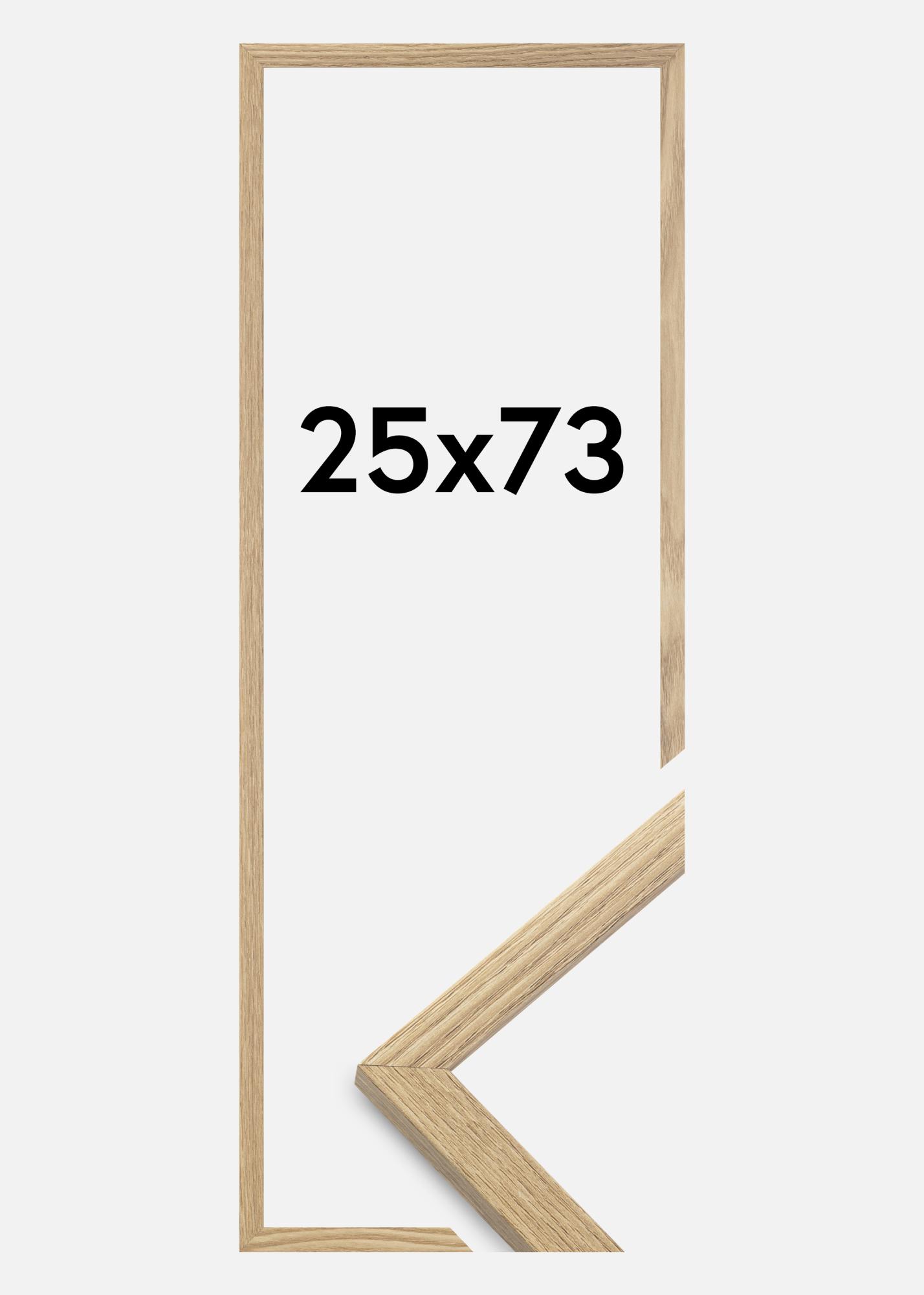 Rama este realizată din MDF cu o suprafață de culoare stejar și are un profil subțire de 14 mm. Există mult spațiu pentru a completa imaginile tale cu un passepartout de lux, datorită adâncimii interioare a ramei (adâncimea fantei) de 12 mm.
