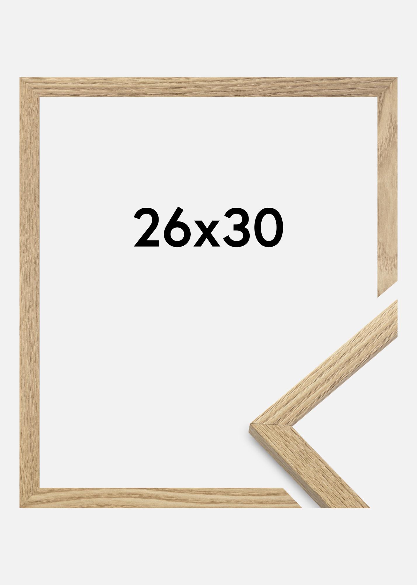 Rama este realizată din MDF cu o suprafață de culoare stejar și are un profil subțire de 14 mm. Există mult spațiu pentru a completa imaginile tale cu un passepartout de lux, datorită adâncimii interioare a ramei (adâncimea fantei) de 12 mm.