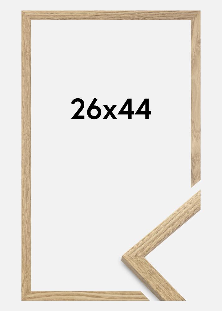 Rama este realizată din MDF cu o suprafață de culoare stejar și are un profil subțire de 14 mm. Există mult spațiu pentru a completa imaginile tale cu un passepartout de lux, datorită adâncimii interioare a ramei (adâncimea fantei) de 12 mm.