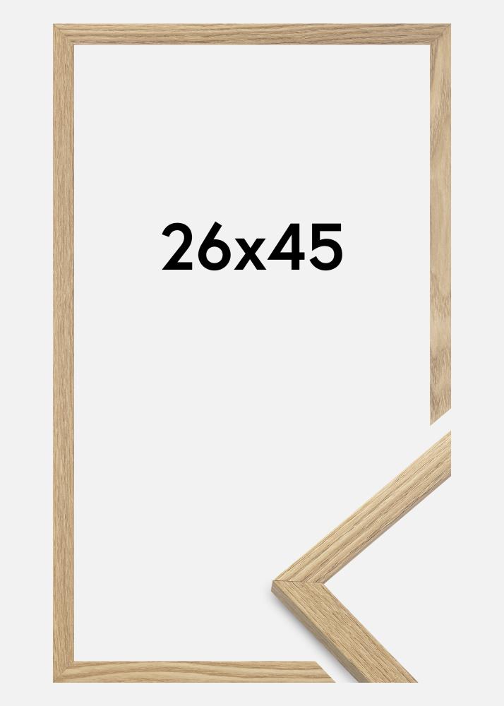 Rama este realizată din MDF cu o suprafață de culoare stejar și are un profil subțire de 14 mm. Există mult spațiu pentru a completa imaginile tale cu un passepartout de lux, datorită adâncimii interioare a ramei (adâncimea fantei) de 12 mm.