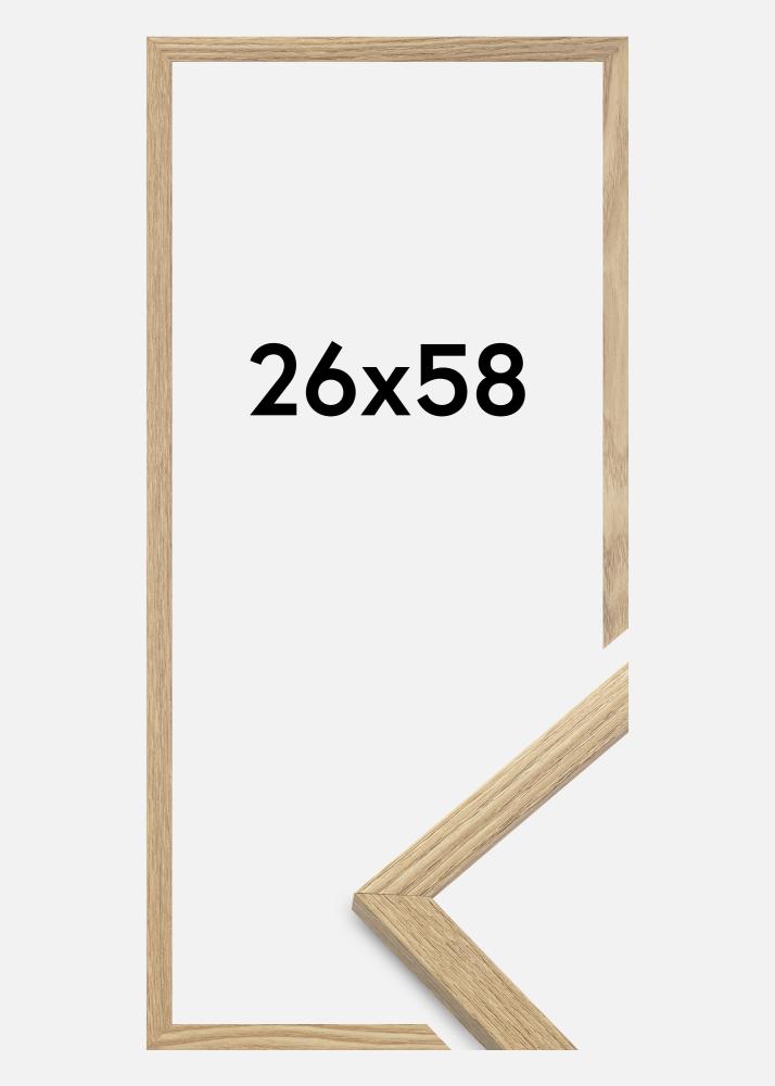 Rama este realizată din MDF cu o suprafață de culoare stejar și are un profil subțire de 14 mm. Există mult spațiu pentru a completa imaginile tale cu un passepartout de lux, datorită adâncimii interioare a ramei (adâncimea fantei) de 12 mm.