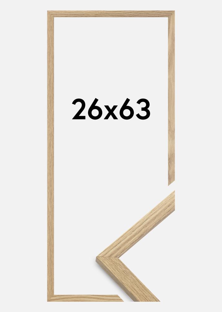 Rama este realizată din MDF cu o suprafață de culoare stejar și are un profil subțire de 14 mm. Există mult spațiu pentru a completa imaginile tale cu un passepartout de lux, datorită adâncimii interioare a ramei (adâncimea fantei) de 12 mm.