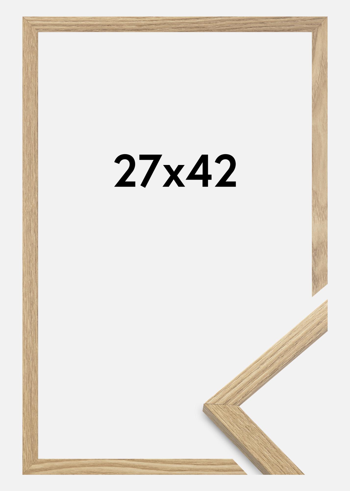Rama este realizată din MDF cu o suprafață de culoare stejar și are un profil subțire de 14 mm. Există mult spațiu pentru a completa imaginile tale cu un passepartout de lux, datorită adâncimii interioare a ramei (adâncimea fantei) de 12 mm.
