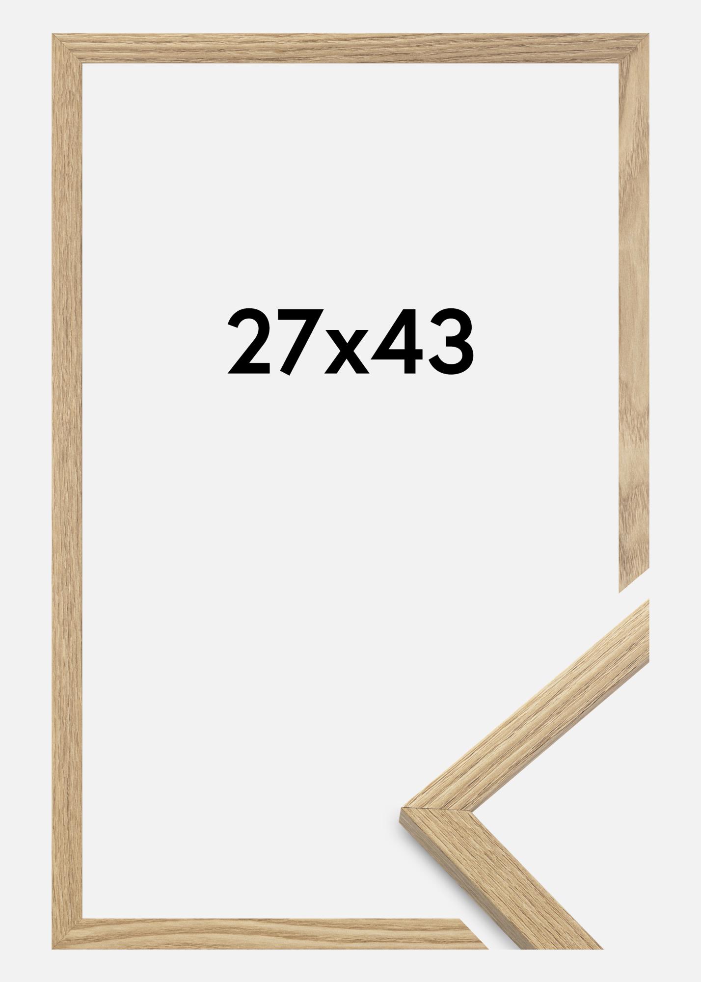 Rama este realizată din MDF cu o suprafață de culoare stejar și are un profil subțire de 14 mm. Există mult spațiu pentru a completa imaginile tale cu un passepartout de lux, datorită adâncimii interioare a ramei (adâncimea fantei) de 12 mm.