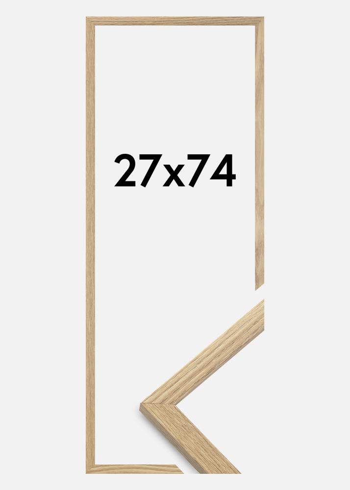 Rama este realizată din MDF cu o suprafață de culoare stejar și are un profil subțire de 14 mm. Există mult spațiu pentru a completa imaginile tale cu un passepartout de lux, datorită adâncimii interioare a ramei (adâncimea fantei) de 12 mm.