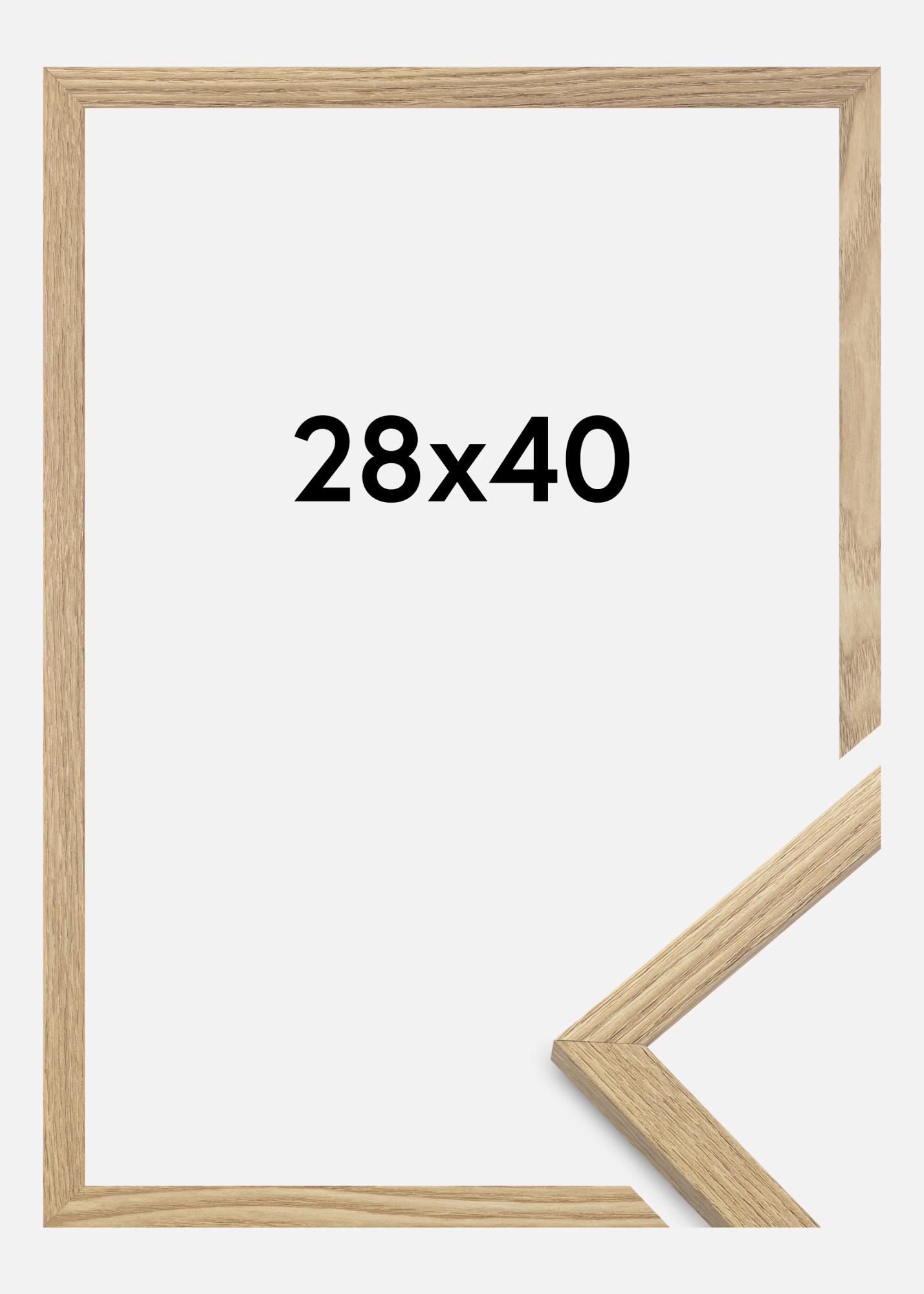 Rama este realizată din MDF cu o suprafață de culoare stejar și are un profil subțire de 14 mm. Există mult spațiu pentru a completa imaginile tale cu un passepartout de lux, datorită adâncimii interioare a ramei (adâncimea fantei) de 12 mm.