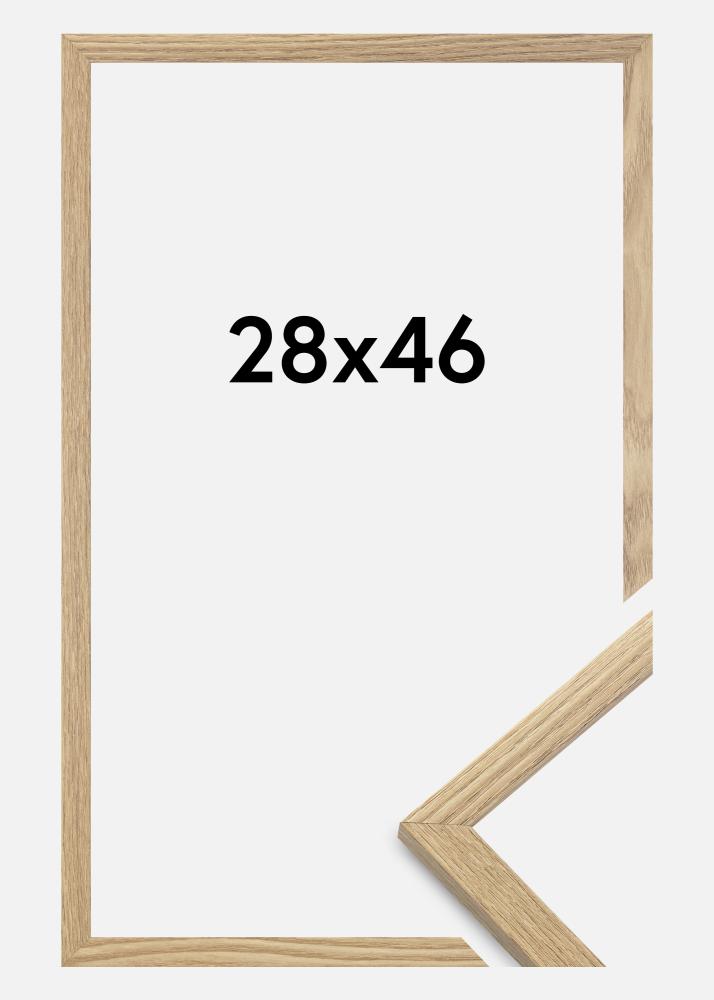 Rama este realizată din MDF cu o suprafață de culoare stejar și are un profil subțire de 14 mm. Există mult spațiu pentru a completa imaginile tale cu un passepartout de lux, datorită adâncimii interioare a ramei (adâncimea fantei) de 12 mm.