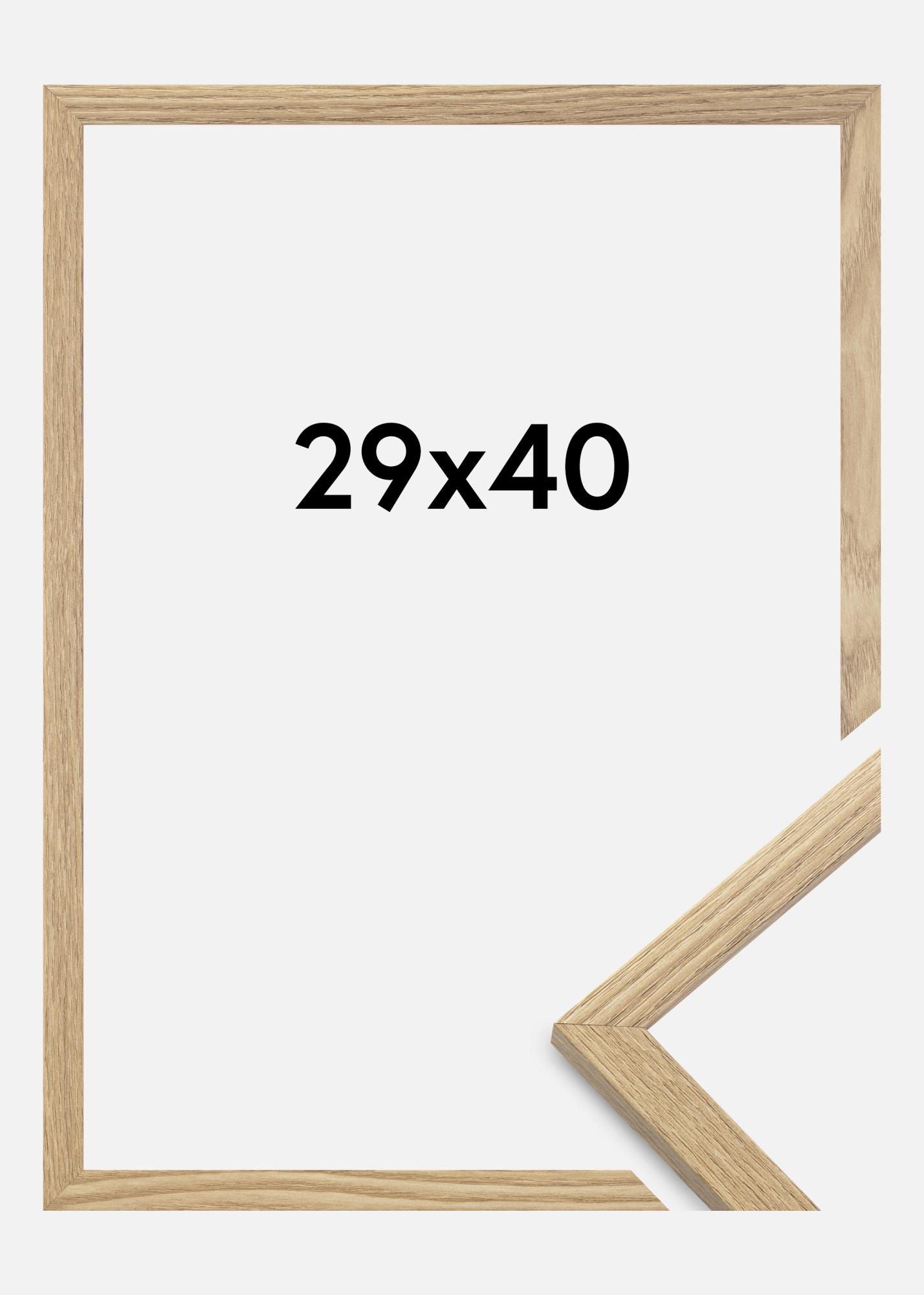 Rama este realizată din MDF cu o suprafață de culoare stejar și are un profil subțire de 14 mm. Există mult spațiu pentru a completa imaginile tale cu un passepartout de lux, datorită adâncimii interioare a ramei (adâncimea fantei) de 12 mm.