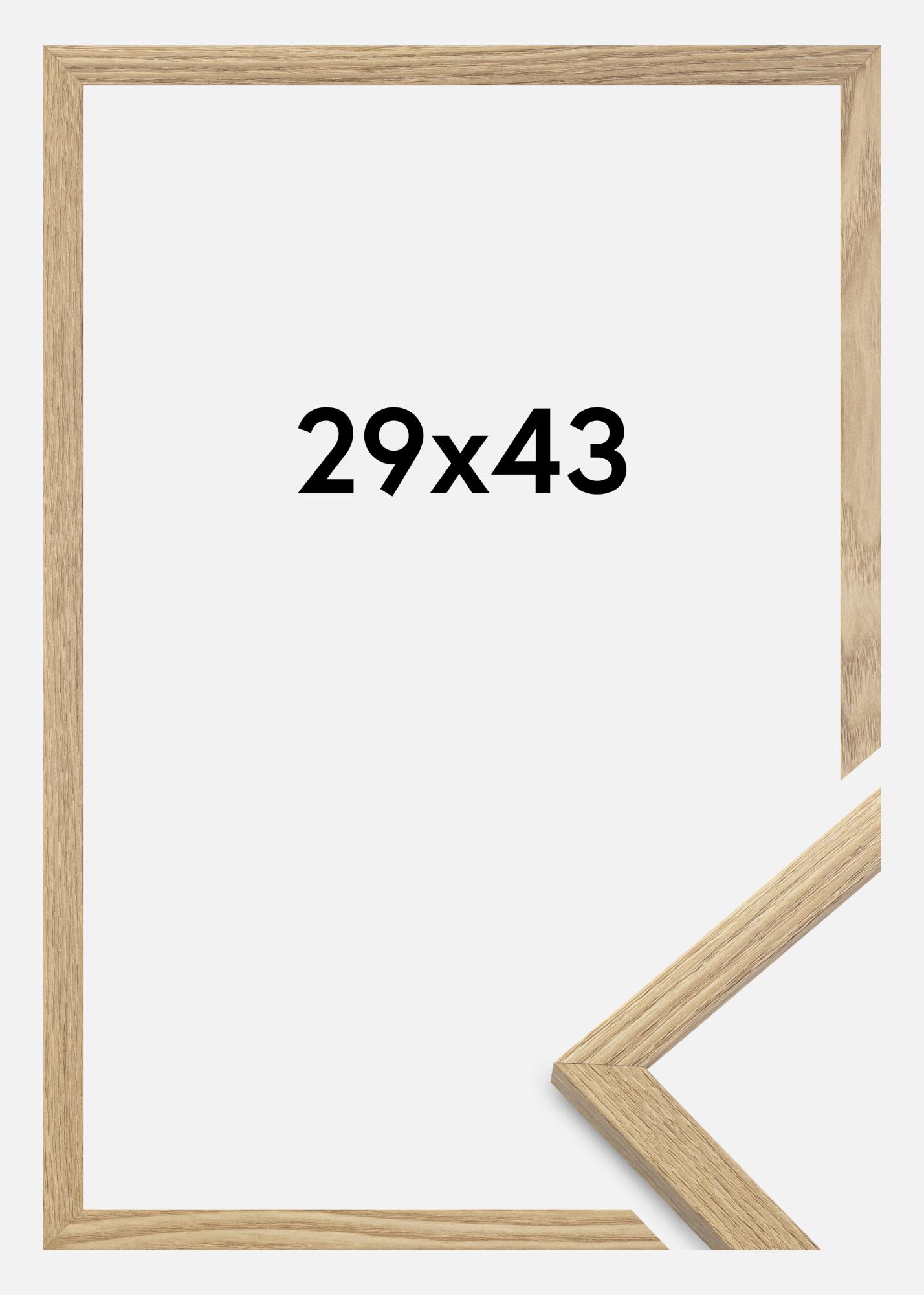 Rama este realizată din MDF cu o suprafață de culoare stejar și are un profil subțire de 14 mm. Există mult spațiu pentru a completa imaginile tale cu un passepartout de lux, datorită adâncimii interioare a ramei (adâncimea fantei) de 12 mm.