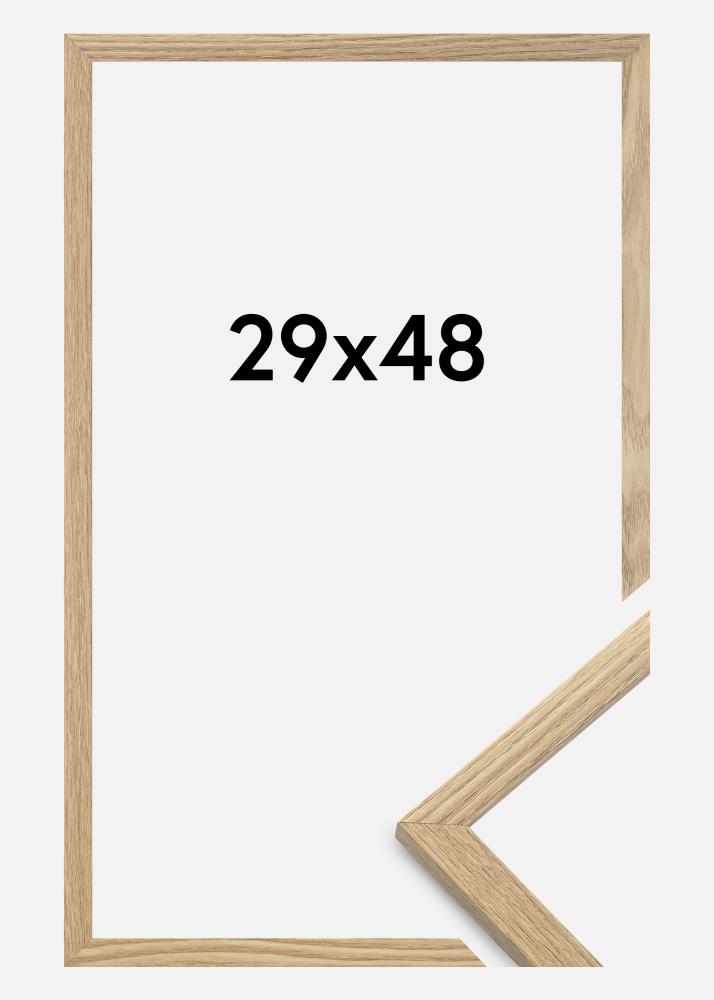 Rama este realizată din MDF cu o suprafață de culoare stejar și are un profil subțire de 14 mm. Există mult spațiu pentru a completa imaginile tale cu un passepartout de lux, datorită adâncimii interioare a ramei (adâncimea fantei) de 12 mm.
