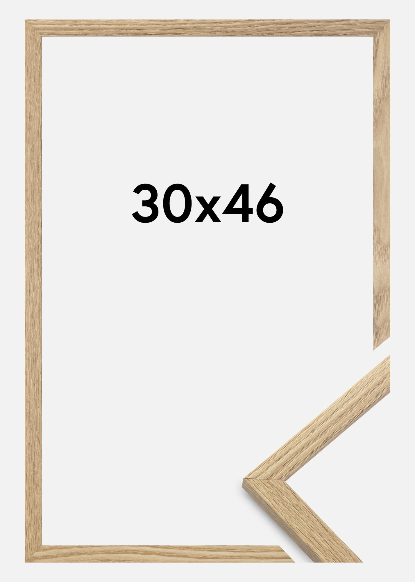 Rama este realizată din MDF cu o suprafață de culoare stejar și are un profil subțire de 14 mm. Există mult spațiu pentru a completa imaginile tale cu un passepartout de lux, datorită adâncimii interioare a ramei (adâncimea fantei) de 12 mm.