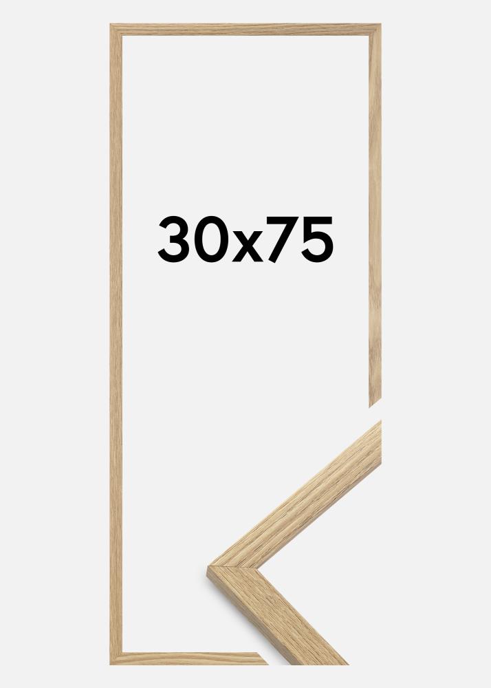 Rama este realizată din MDF cu o suprafață de culoare stejar și are un profil subțire de 14 mm. Există mult spațiu pentru a completa imaginile tale cu un passepartout de lux, datorită adâncimii interioare a ramei (adâncimea fantei) de 12 mm.