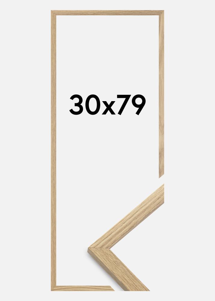 Rama este realizată din MDF cu o suprafață de culoare stejar și are un profil subțire de 14 mm. Există mult spațiu pentru a completa imaginile tale cu un passepartout de lux, datorită adâncimii interioare a ramei (adâncimea fantei) de 12 mm.