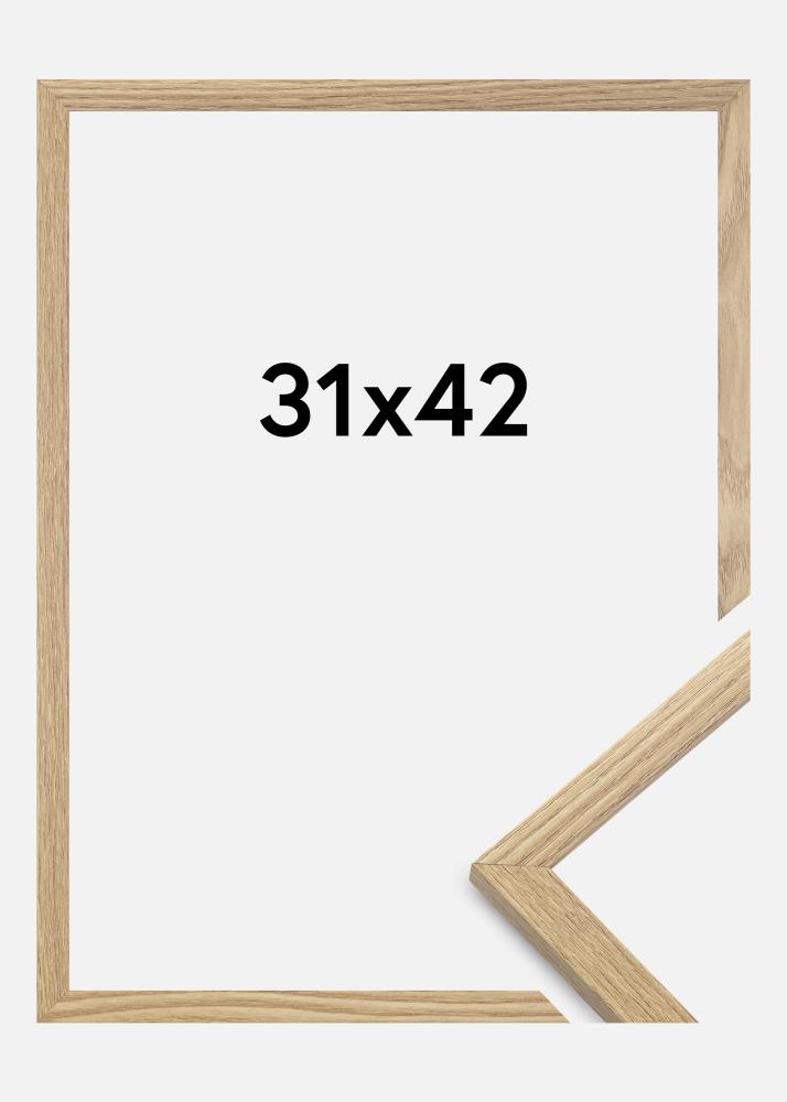 Rama este realizată din MDF cu o suprafață de culoare stejar și are un profil subțire de 14 mm. Există mult spațiu pentru a completa imaginile tale cu un passepartout de lux, datorită adâncimii interioare a ramei (adâncimea fantei) de 12 mm.