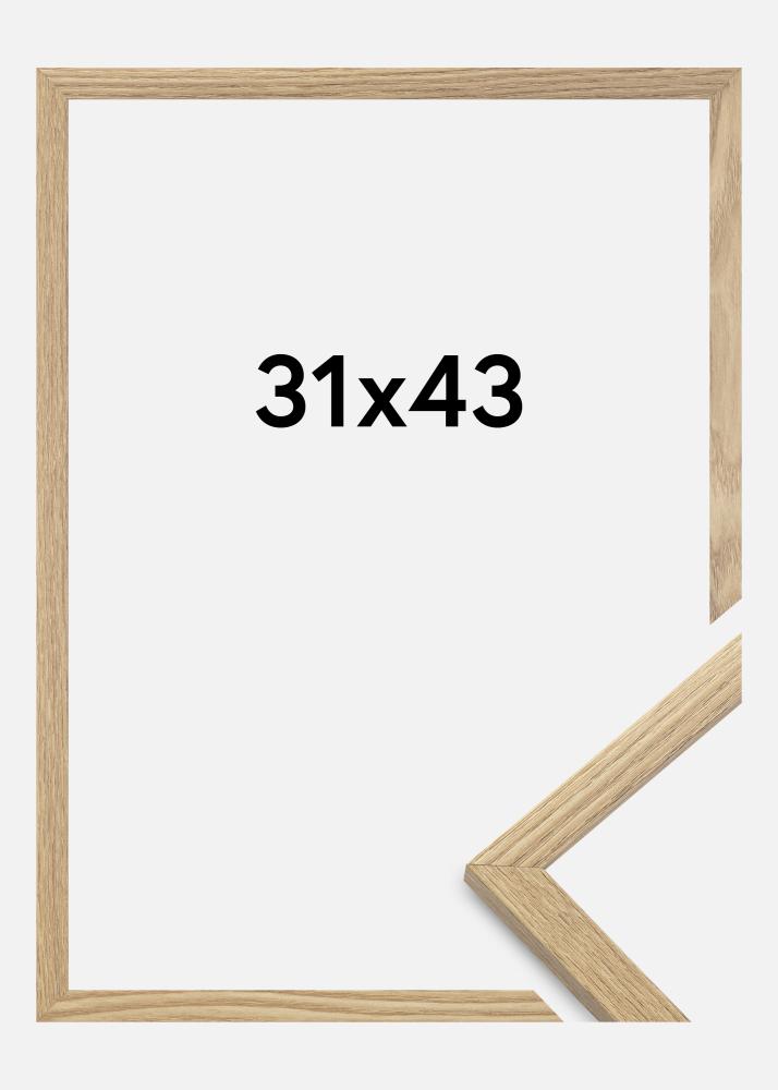 Rama este realizată din MDF cu o suprafață de culoare stejar și are un profil subțire de 14 mm. Există mult spațiu pentru a completa imaginile tale cu un passepartout de lux, datorită adâncimii interioare a ramei (adâncimea fantei) de 12 mm.