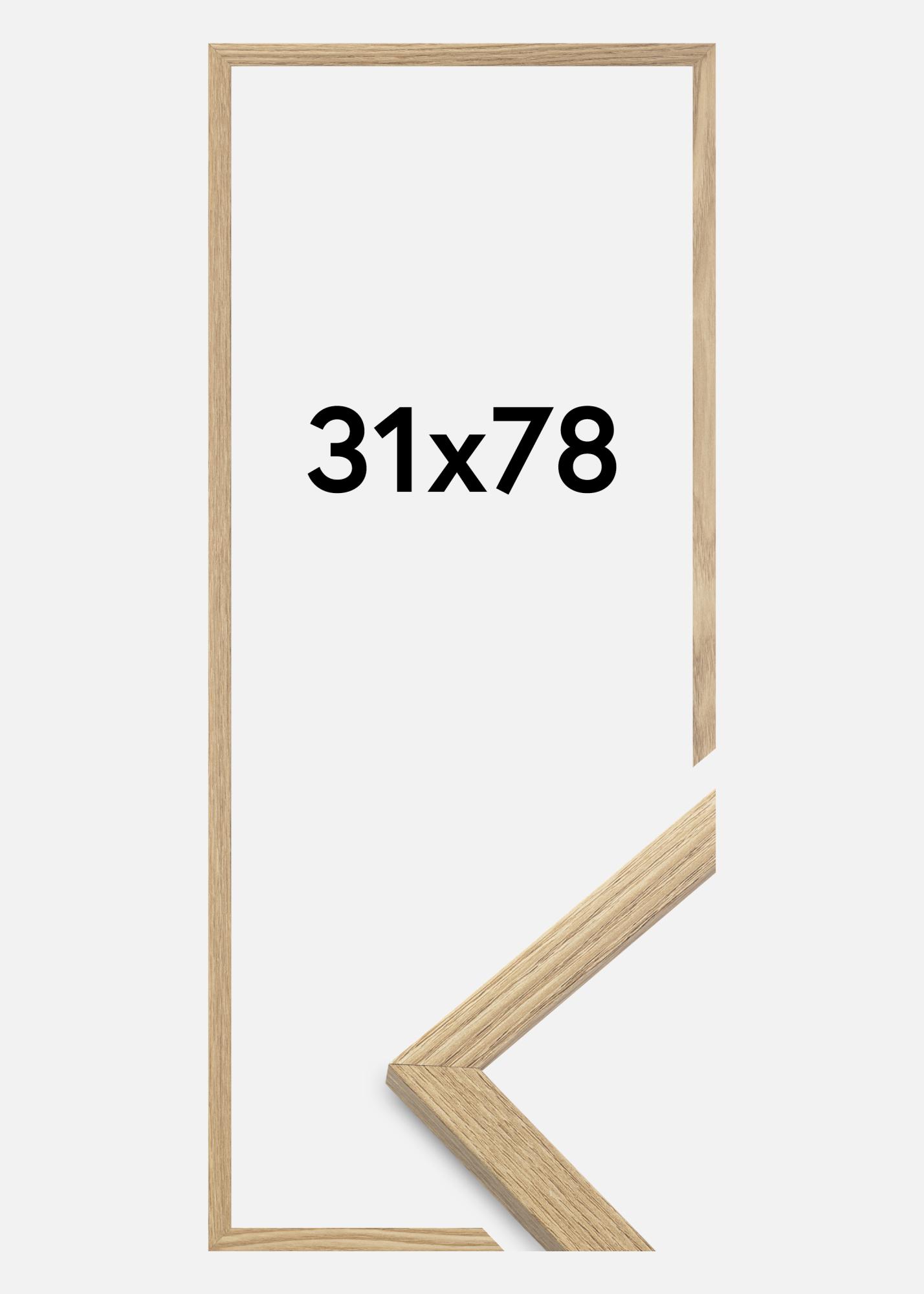 Rama este realizată din MDF cu o suprafață de culoare stejar și are un profil subțire de 14 mm. Există mult spațiu pentru a completa imaginile tale cu un passepartout de lux, datorită adâncimii interioare a ramei (adâncimea fantei) de 12 mm.