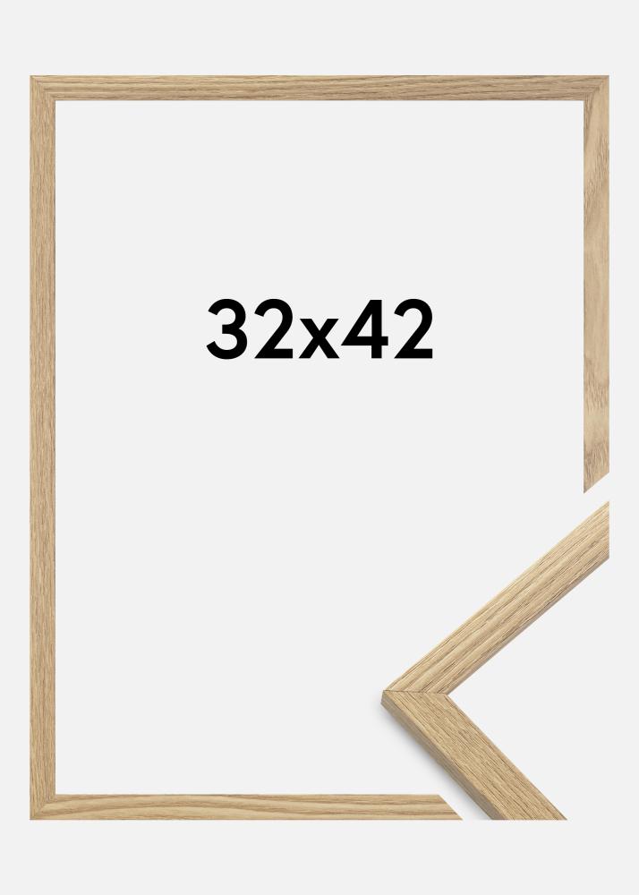 Rama este realizată din MDF cu o suprafață de culoare stejar și are un profil subțire de 14 mm. Există mult spațiu pentru a completa imaginile tale cu un passepartout de lux, datorită adâncimii interioare a ramei (adâncimea fantei) de 12 mm.