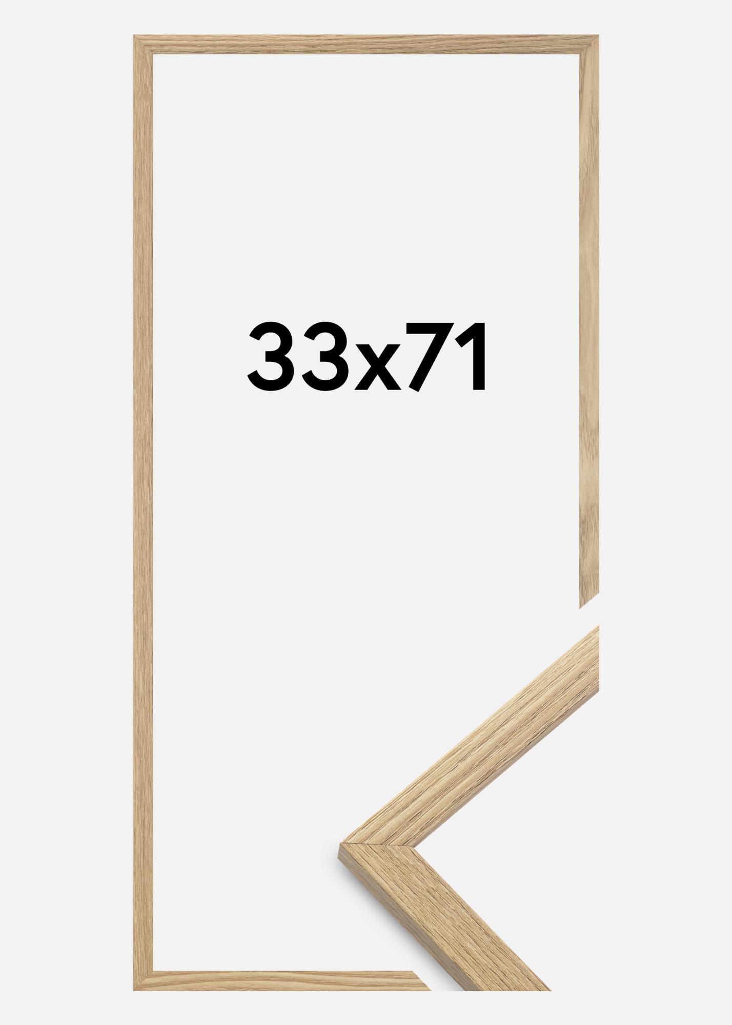 Rama este realizată din MDF cu o suprafață de culoare stejar și are un profil subțire de 14 mm. Există mult spațiu pentru a completa imaginile tale cu un passepartout de lux, datorită adâncimii interioare a ramei (adâncimea fantei) de 12 mm.