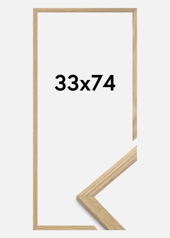 Rama este realizată din MDF cu o suprafață de culoare stejar și are un profil subțire de 14 mm. Există mult spațiu pentru a completa imaginile tale cu un passepartout de lux, datorită adâncimii interioare a ramei (adâncimea fantei) de 12 mm.