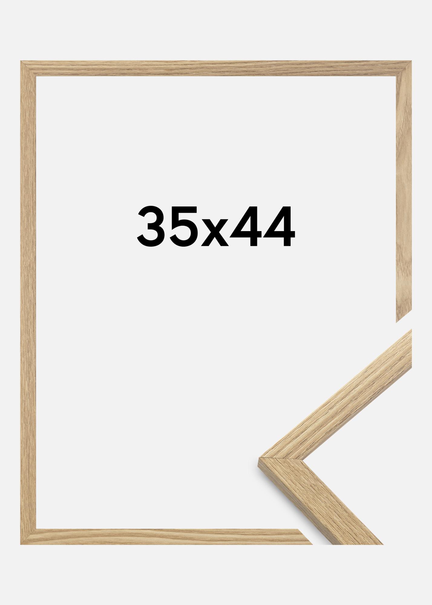 Rama este realizată din MDF cu o suprafață de culoare stejar și are un profil subțire de 14 mm. Există mult spațiu pentru a completa imaginile tale cu un passepartout de lux, datorită adâncimii interioare a ramei (adâncimea fantei) de 12 mm.