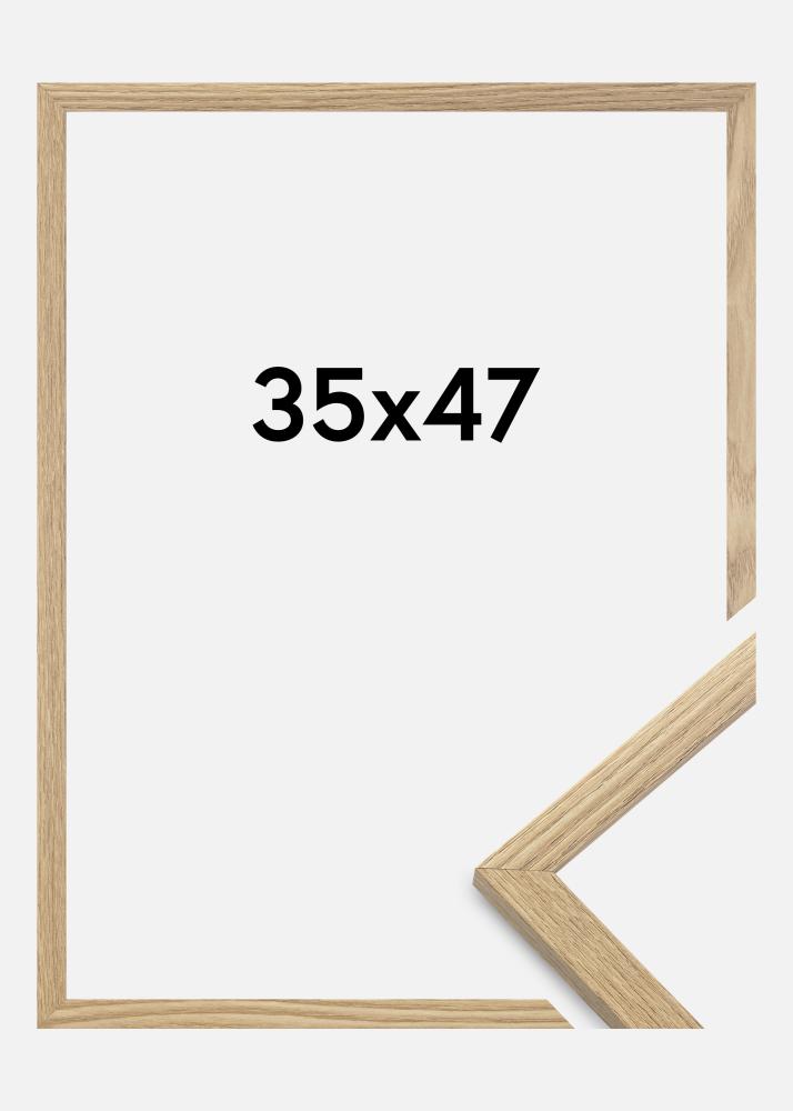 Rama este realizată din MDF cu o suprafață de culoare stejar și are un profil subțire de 14 mm. Există mult spațiu pentru a completa imaginile tale cu un passepartout de lux, datorită adâncimii interioare a ramei (adâncimea fantei) de 12 mm.