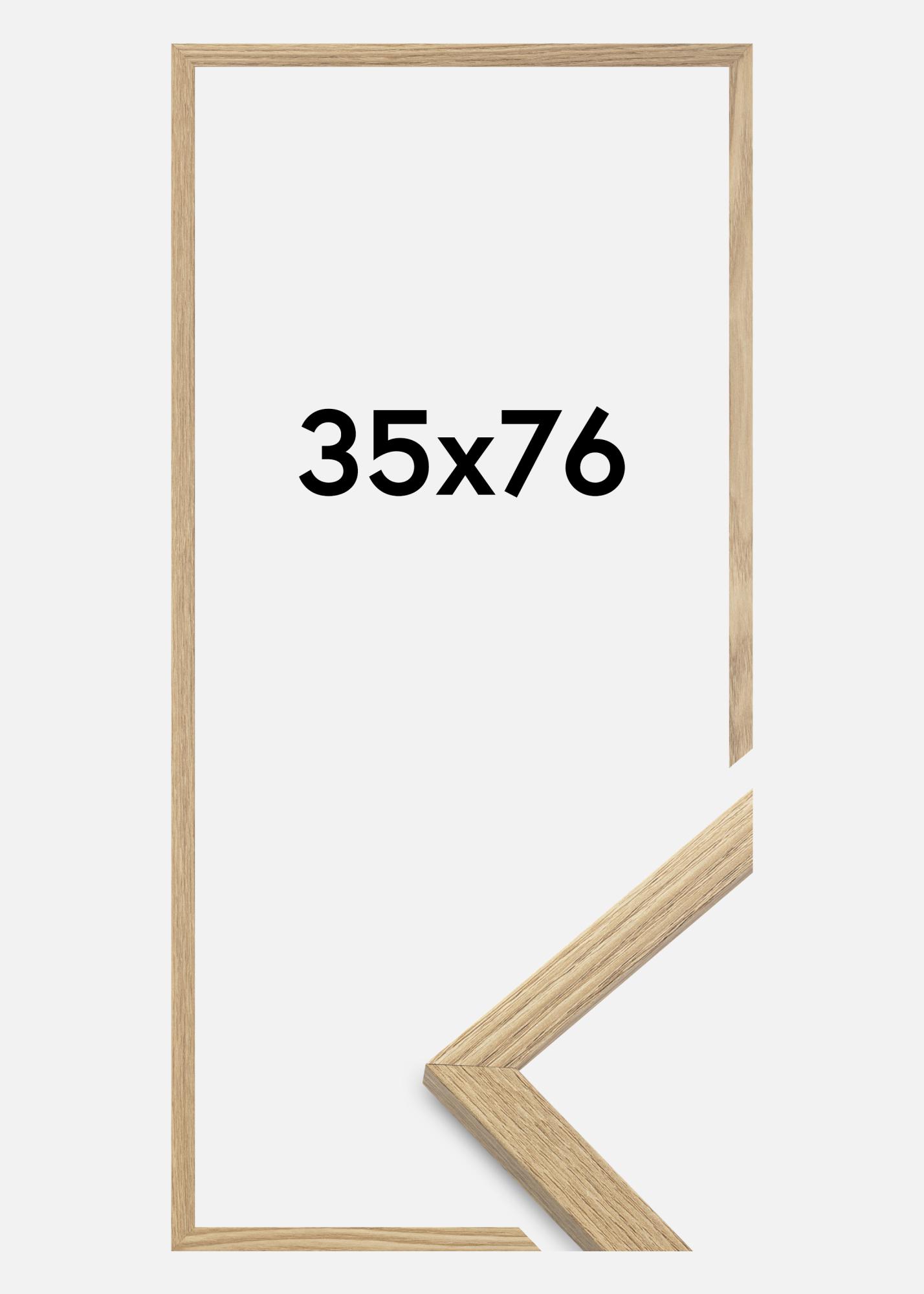 Rama este realizată din MDF cu o suprafață de culoare stejar și are un profil subțire de 14 mm. Există mult spațiu pentru a completa imaginile tale cu un passepartout de lux, datorită adâncimii interioare a ramei (adâncimea fantei) de 12 mm.