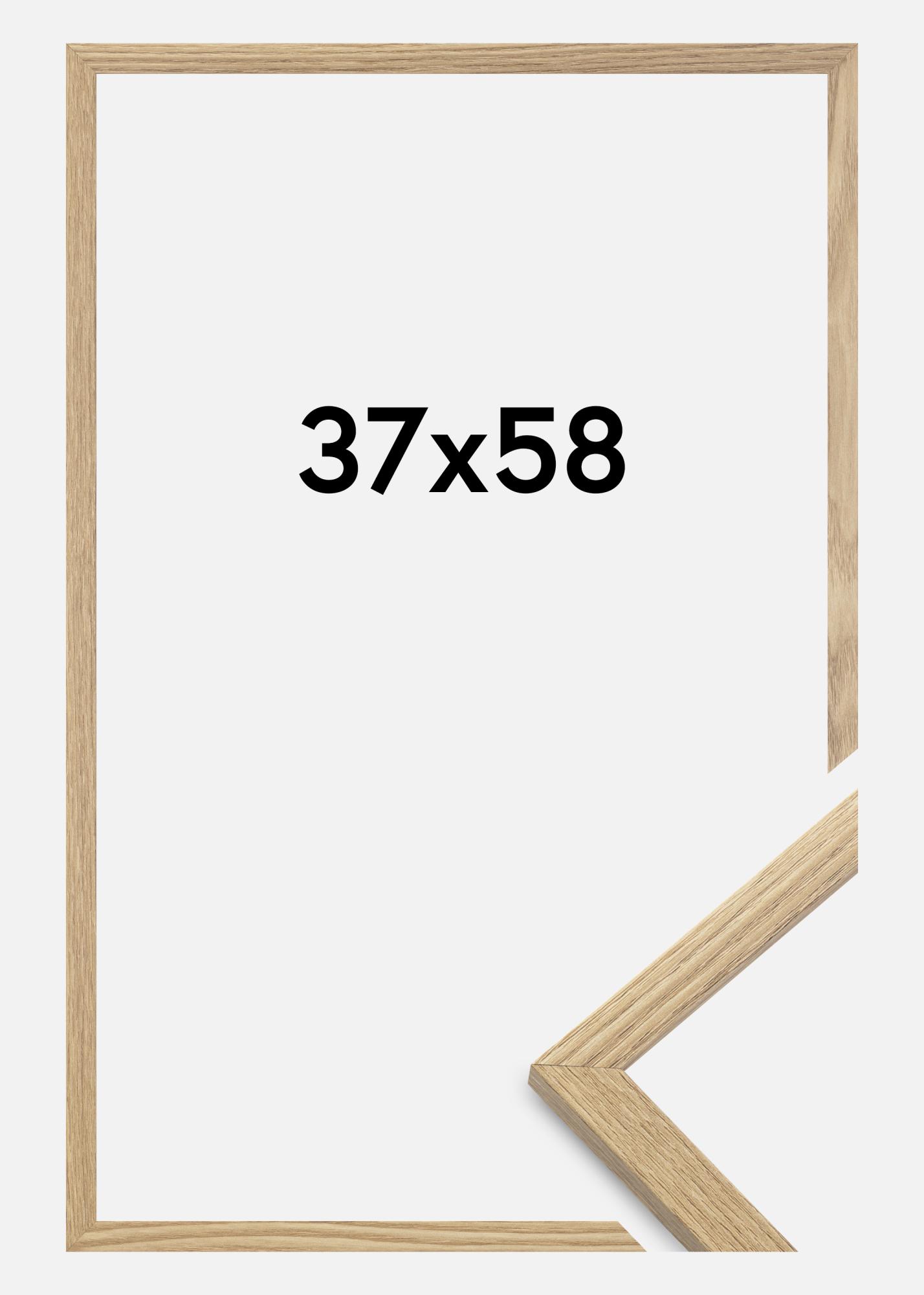 Rama este realizată din MDF cu o suprafață de culoare stejar și are un profil subțire de 14 mm. Există mult spațiu pentru a completa imaginile tale cu un passepartout de lux, datorită adâncimii interioare a ramei (adâncimea fantei) de 12 mm.