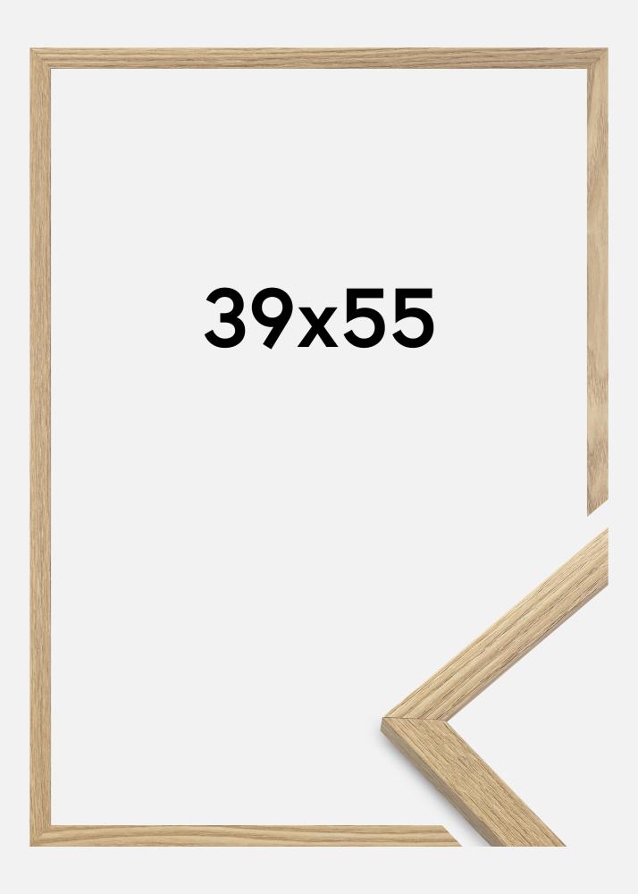 Rama este realizată din MDF cu o suprafață de culoare stejar și are un profil subțire de 14 mm. Există mult spațiu pentru a completa imaginile tale cu un passepartout de lux, datorită adâncimii interioare a ramei (adâncimea fantei) de 12 mm.